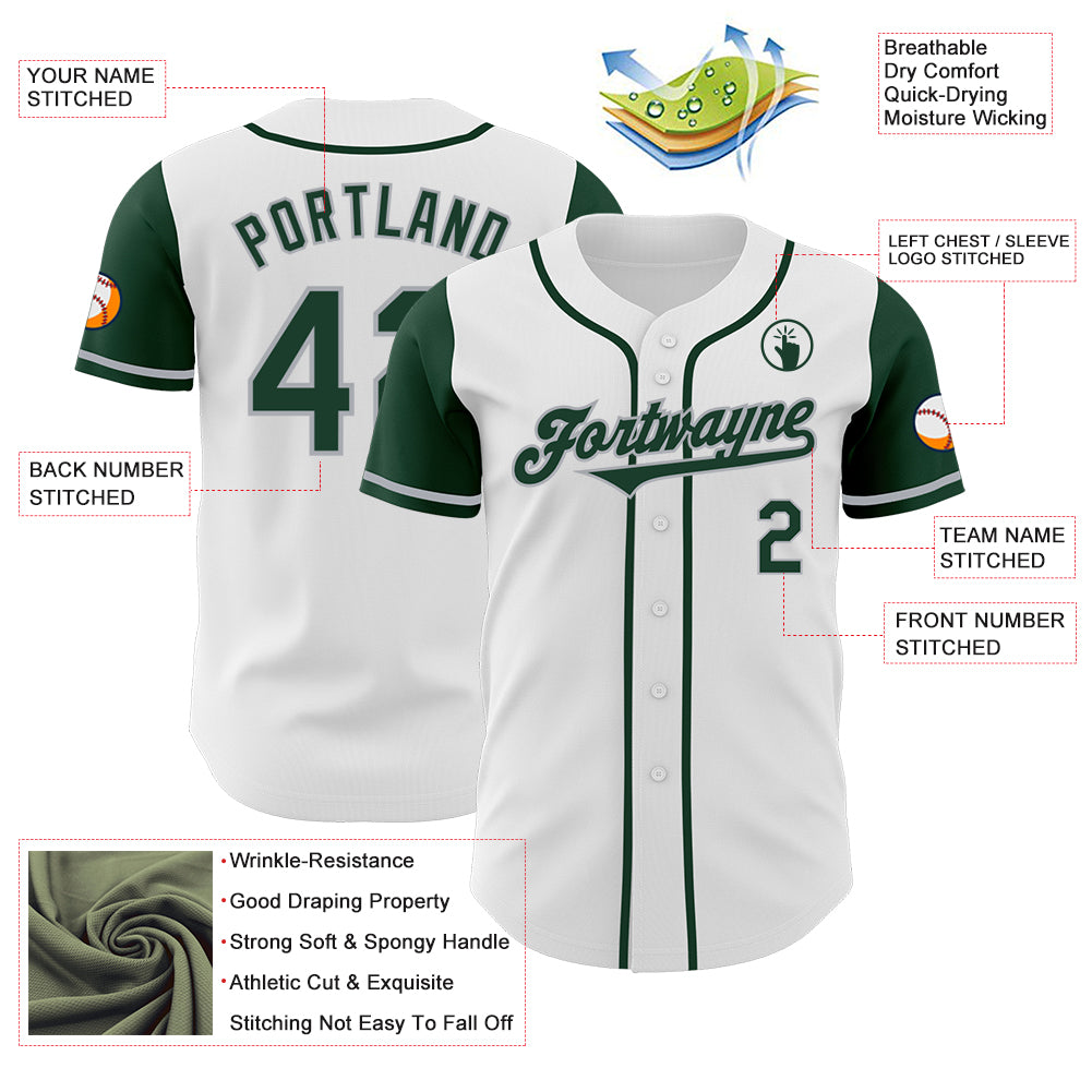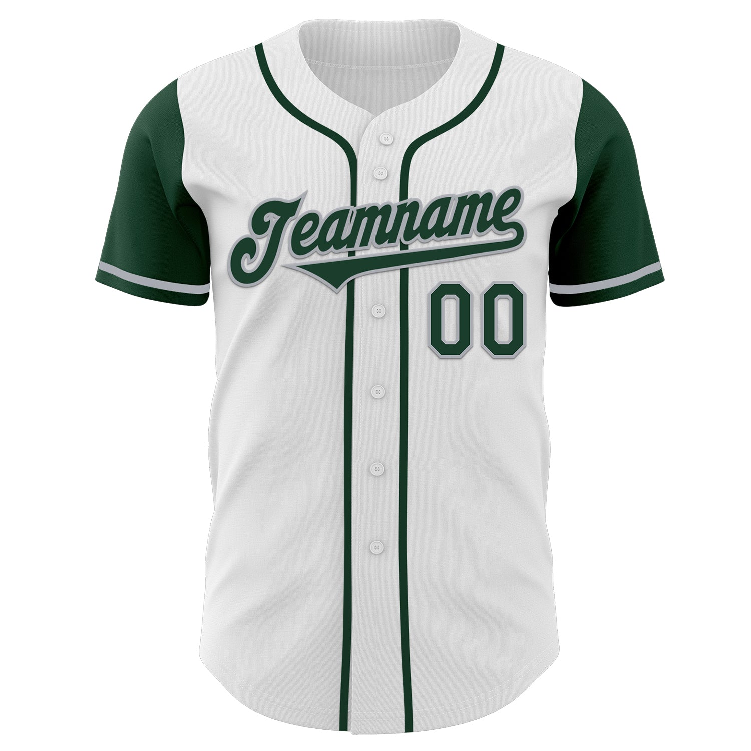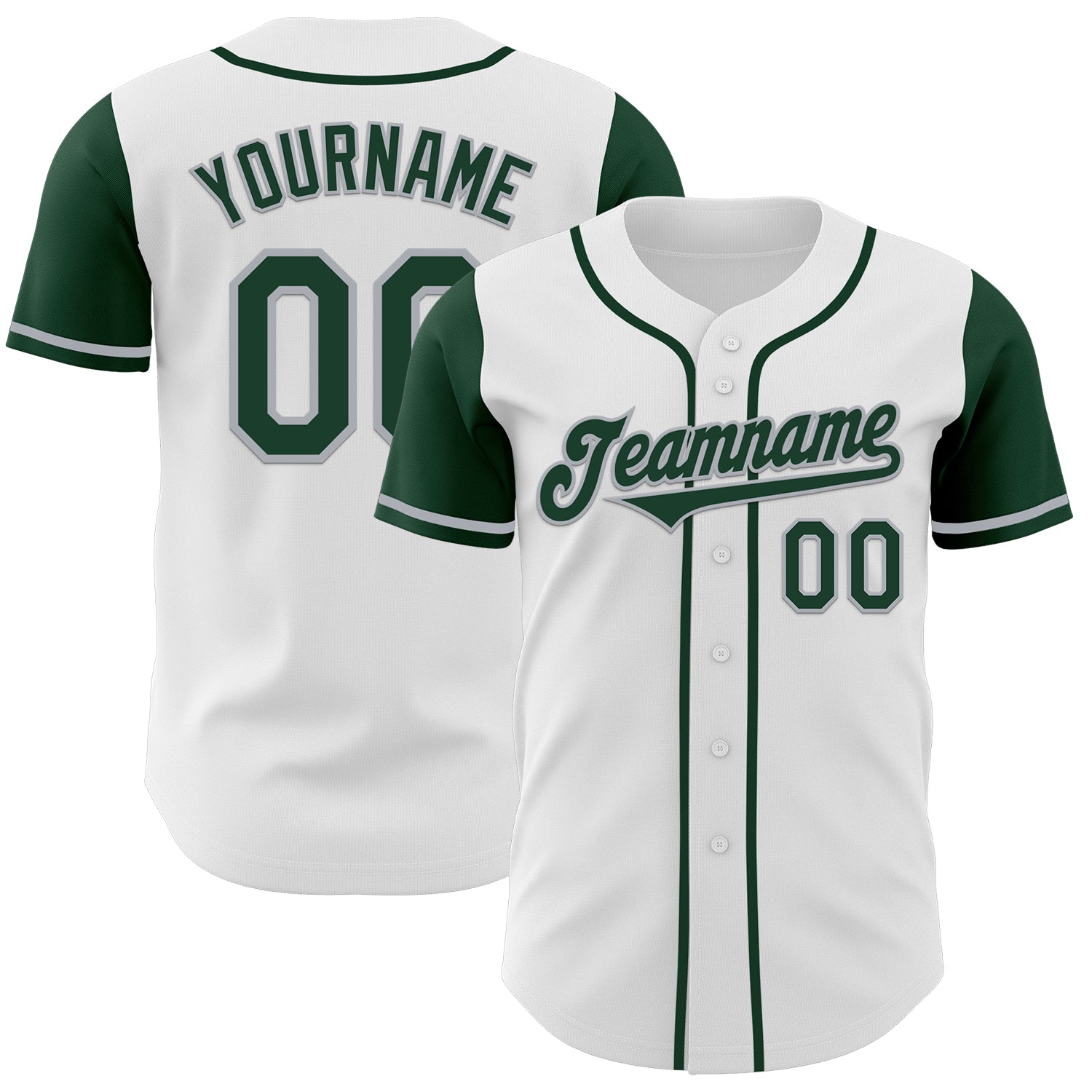 Custom White Green-Gray Authentic Two Tone Baseball Jersey