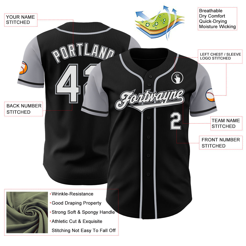 Custom Black White-Gray Authentic Two Tone Baseball Jersey