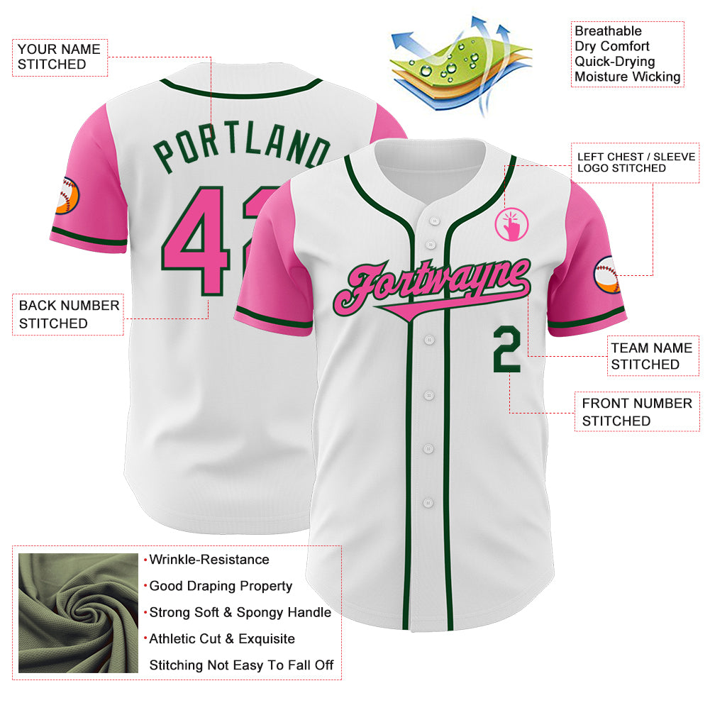 Custom White Pink-Green Authentic Two Tone Baseball Jersey