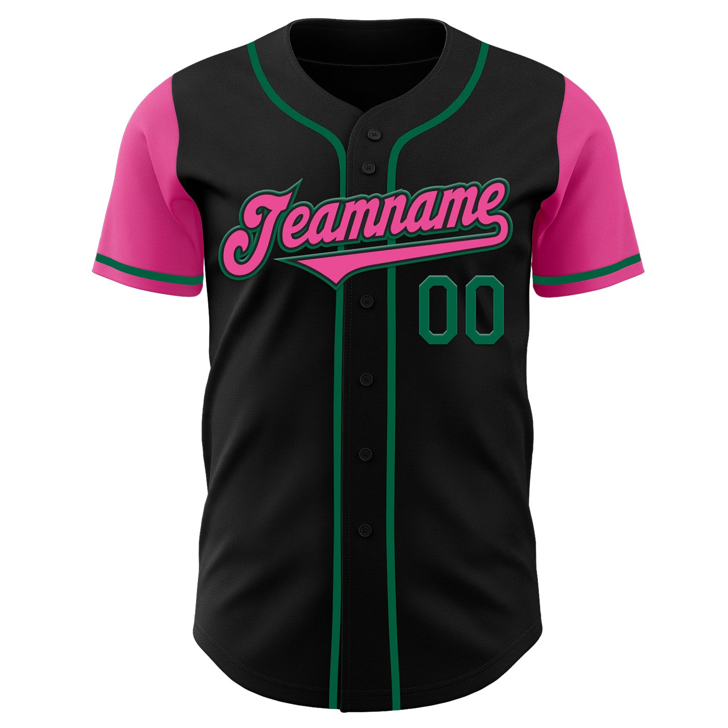 Custom Black Pink-Kelly Green Authentic Two Tone Baseball Jersey