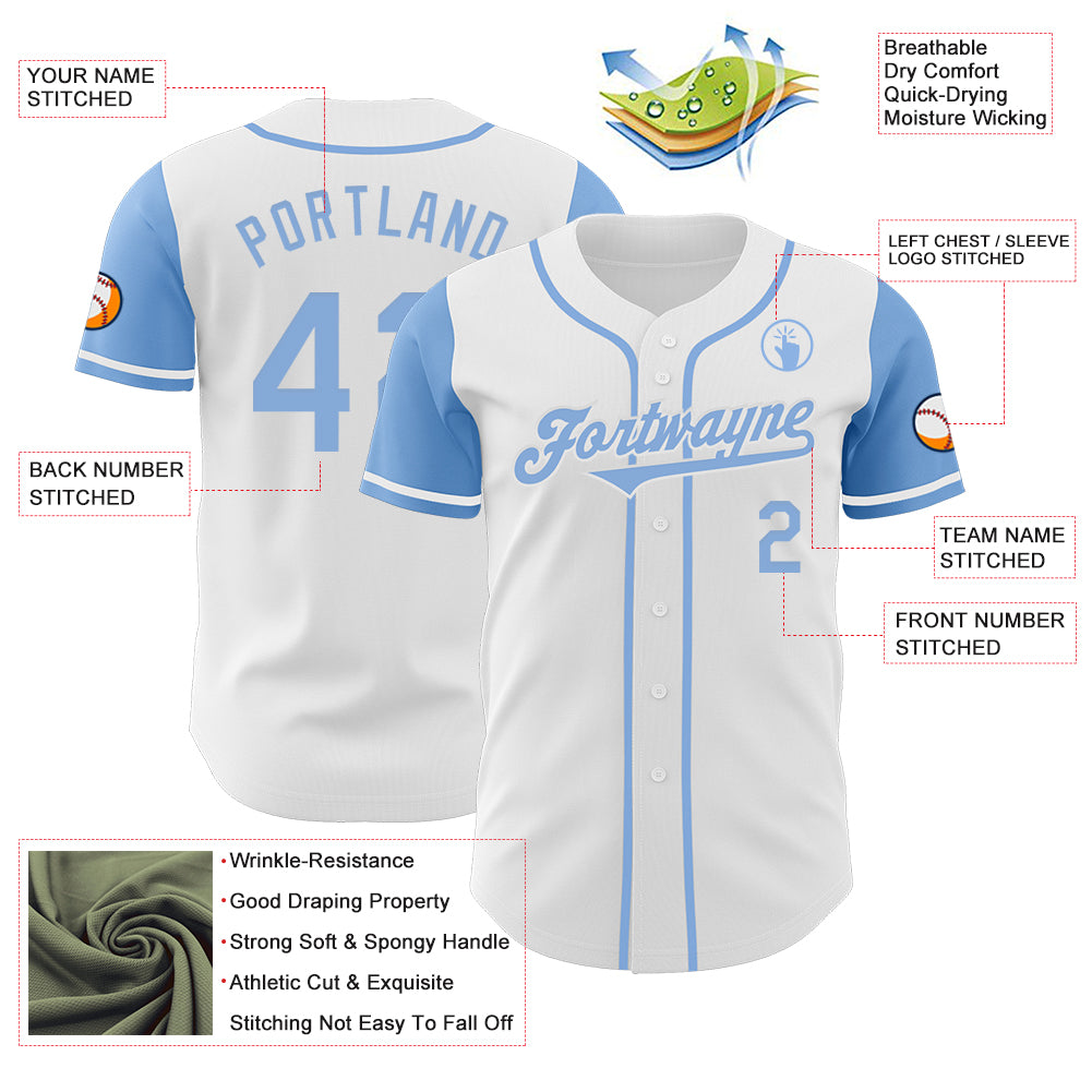 Custom White Light Blue Authentic Two Tone Baseball Jersey