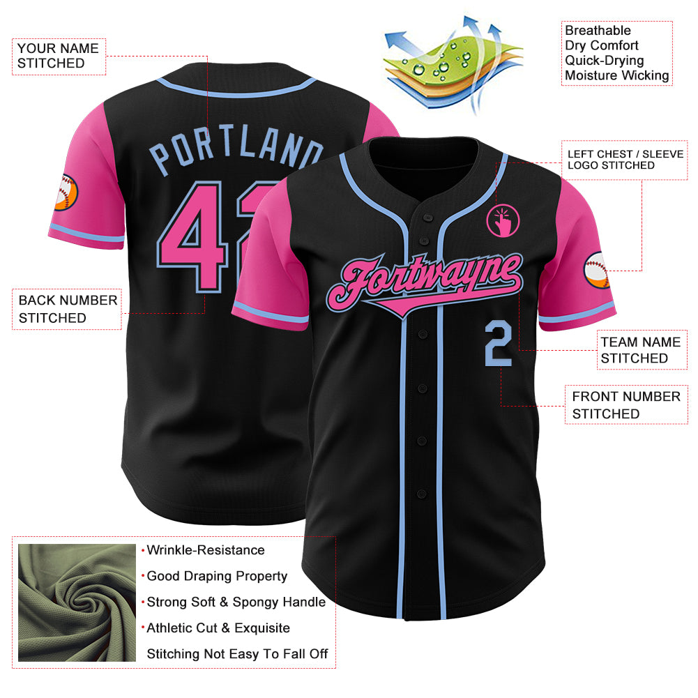Custom Black Pink-Light Blue Authentic Two Tone Baseball Jersey