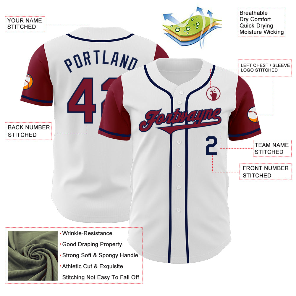 Custom White Crimson-Navy Authentic Two Tone Baseball Jersey
