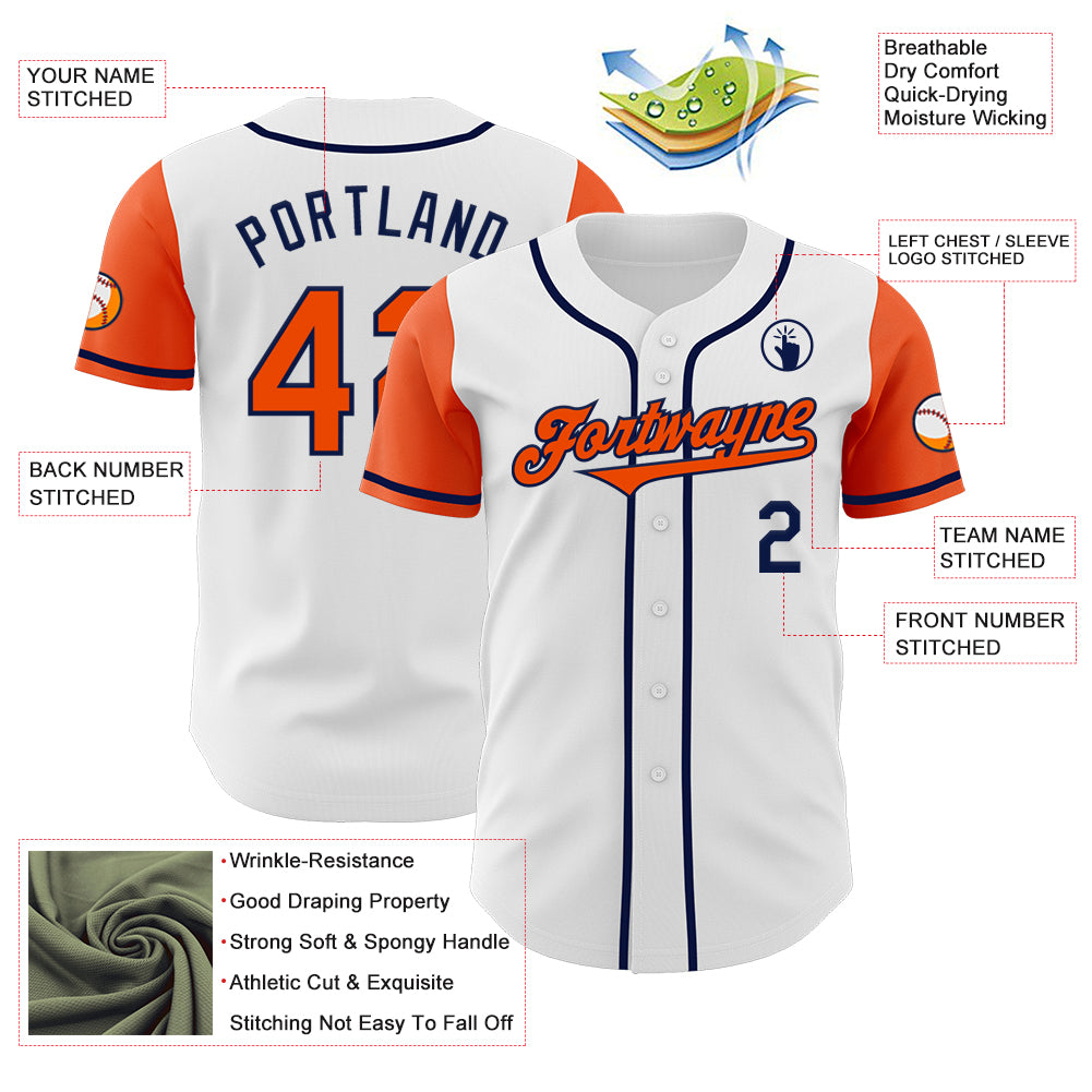 Custom White Orange-Navy Authentic Two Tone Baseball Jersey