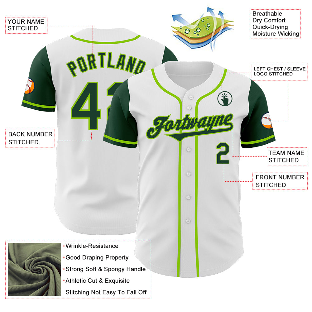 Custom White Green-Neon Green Authentic Two Tone Baseball Jersey