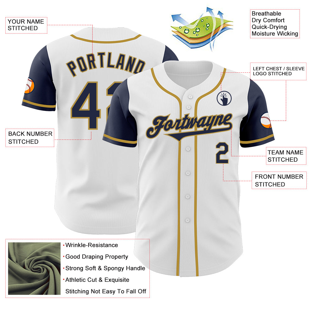 Custom White Navy-Old Gold Authentic Two Tone Baseball Jersey