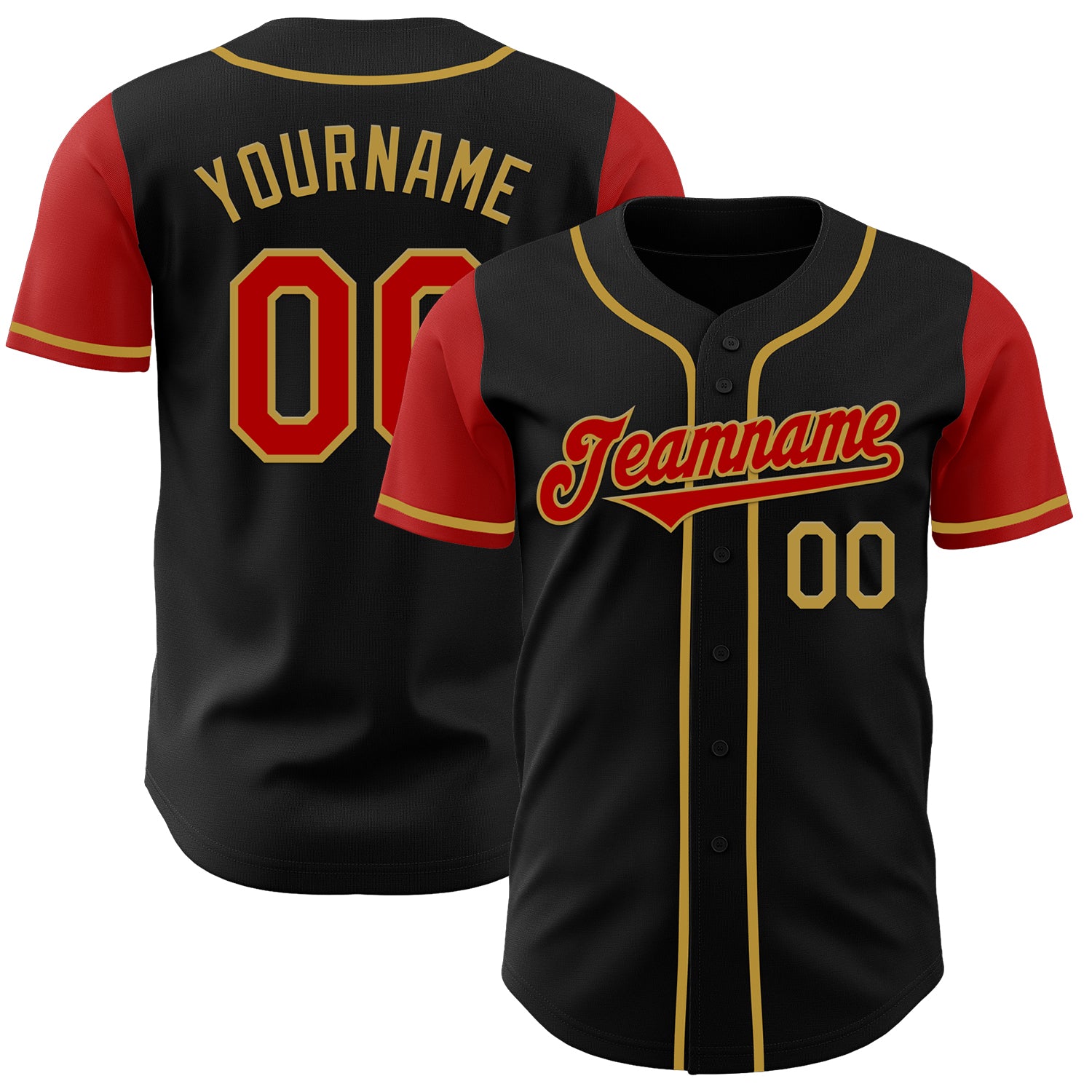 Custom Black Red-Old Gold Authentic Two Tone Baseball Jersey