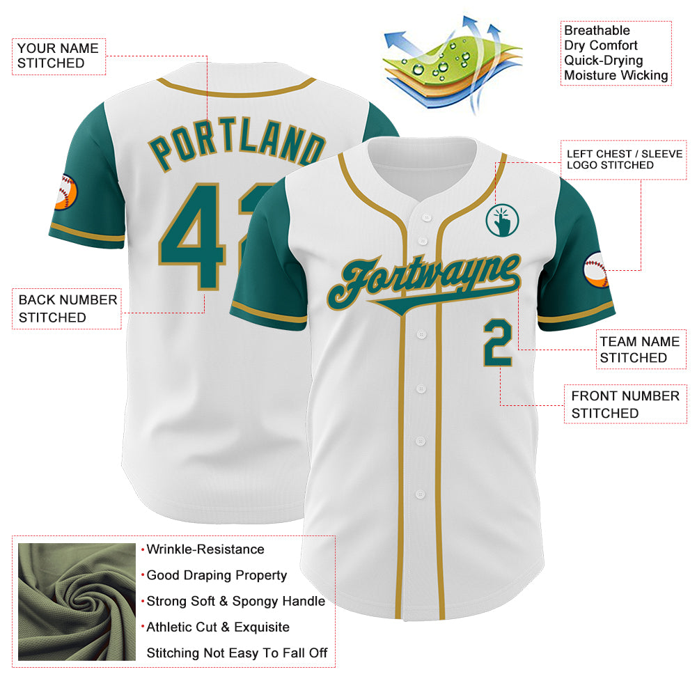 Custom White Teal-Old Gold Authentic Two Tone Baseball Jersey