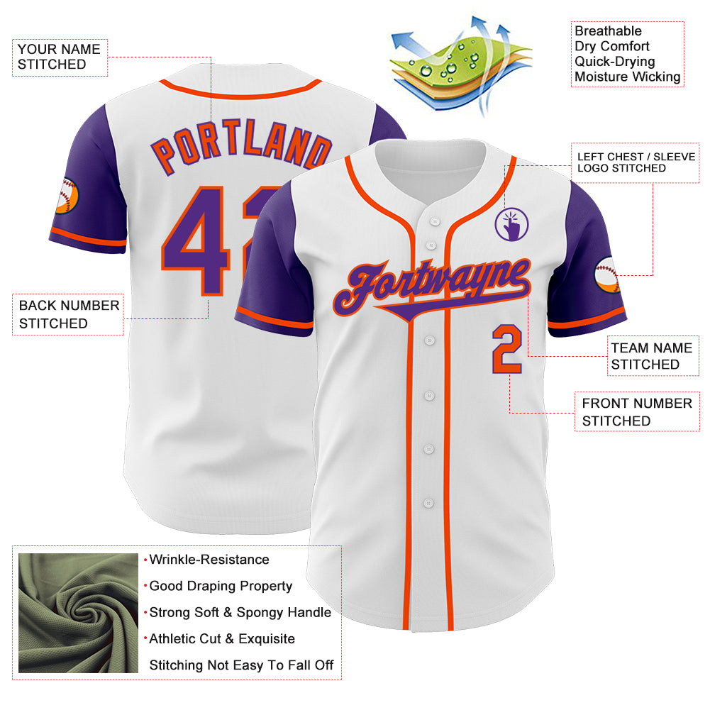 Custom White Purple-Orange Authentic Two Tone Baseball Jersey