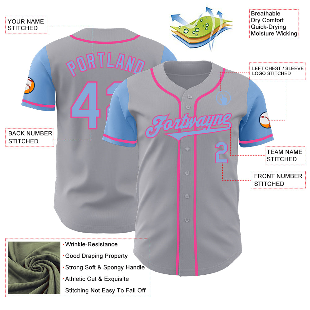 Custom Gray Light Blue-Pink Authentic Two Tone Baseball Jersey