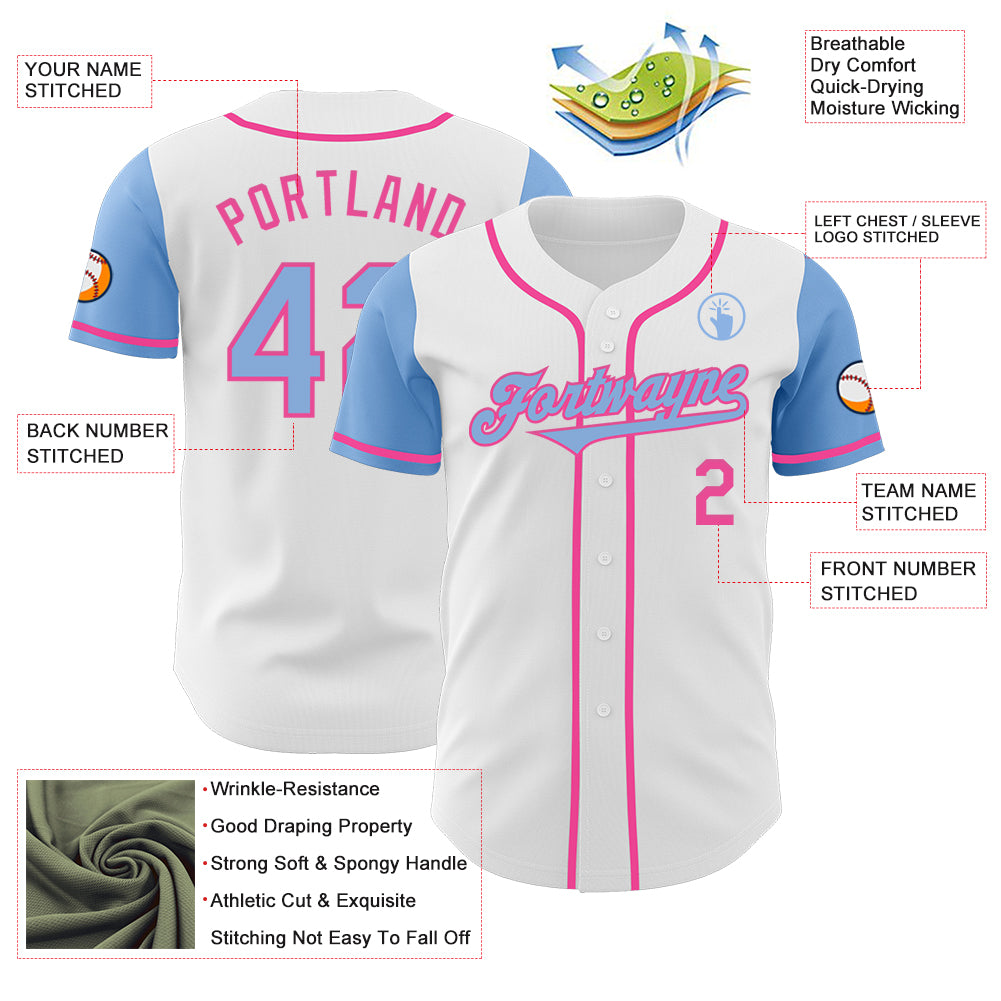Custom White Light Blue-Pink Authentic Two Tone Baseball Jersey