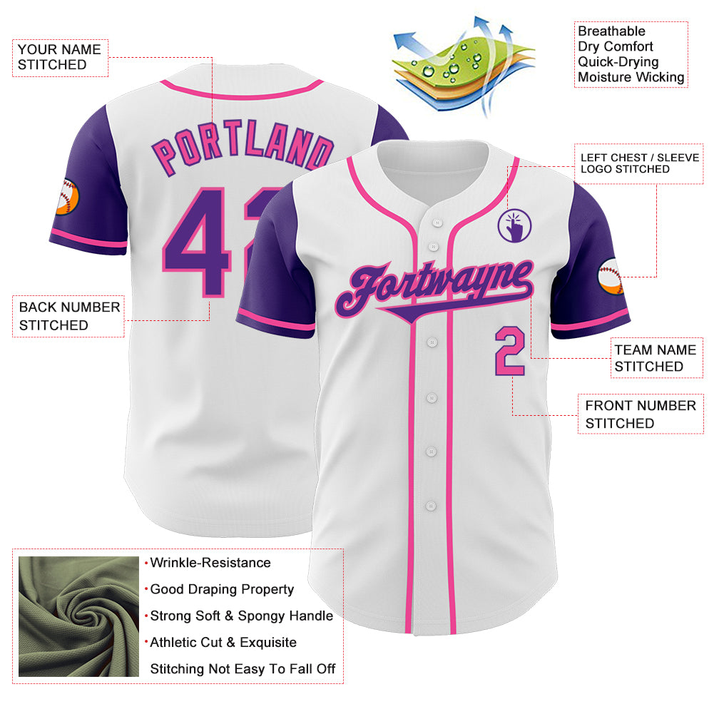 Custom White Purple-Pink Authentic Two Tone Baseball Jersey