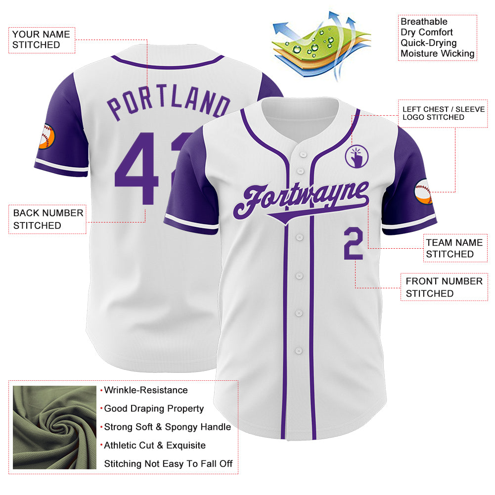Custom White Purple Authentic Two Tone Baseball Jersey