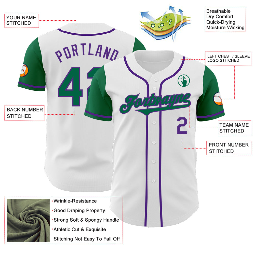 Custom White Kelly Green-Purple Authentic Two Tone Baseball Jersey