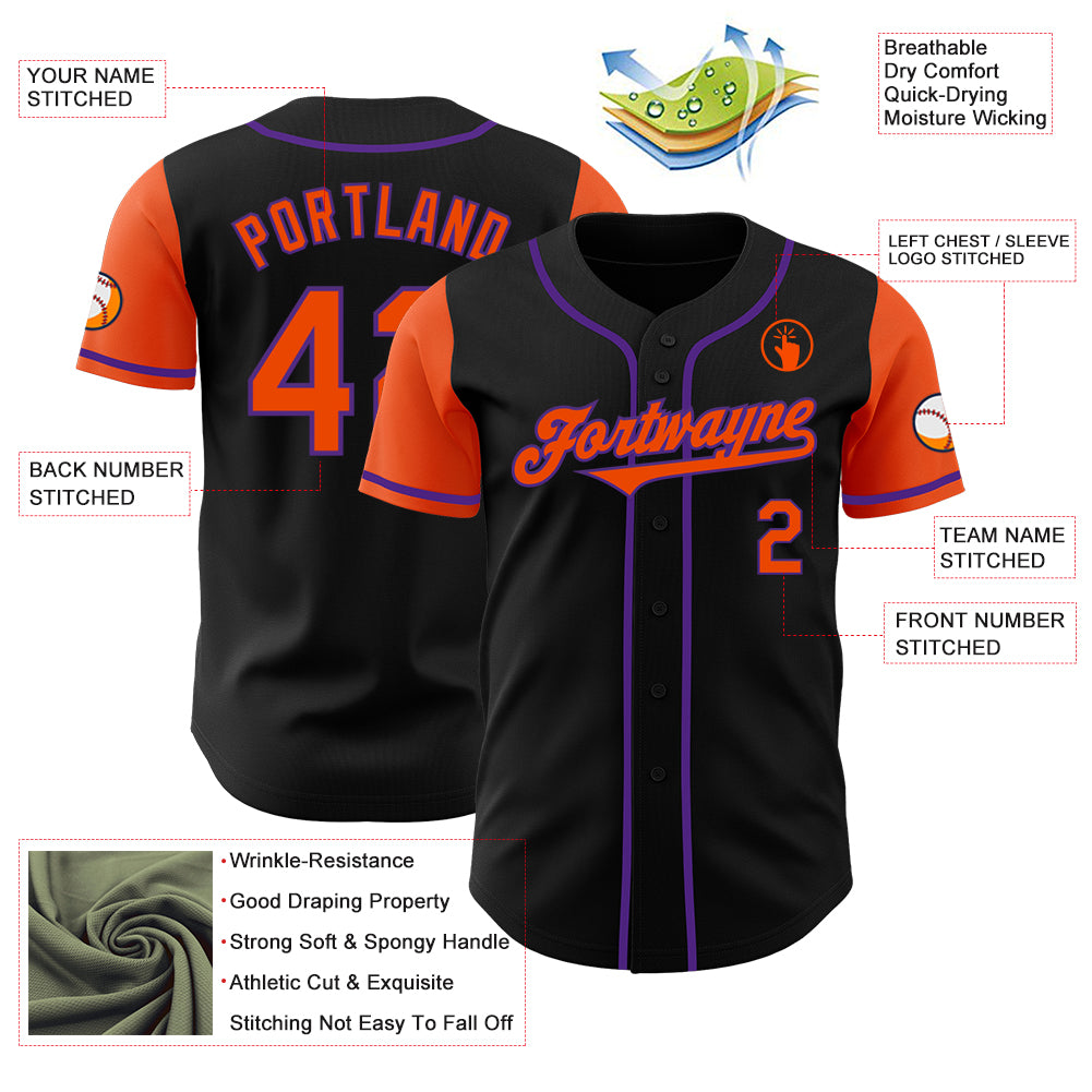 Custom Black Orange-Purple Authentic Two Tone Baseball Jersey
