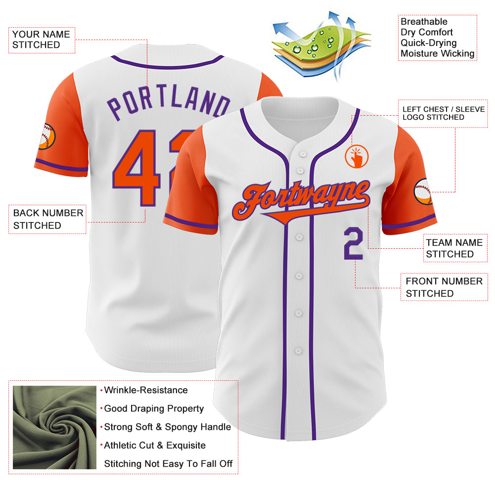 Custom White Orange-Purple Authentic Two Tone Baseball Jersey