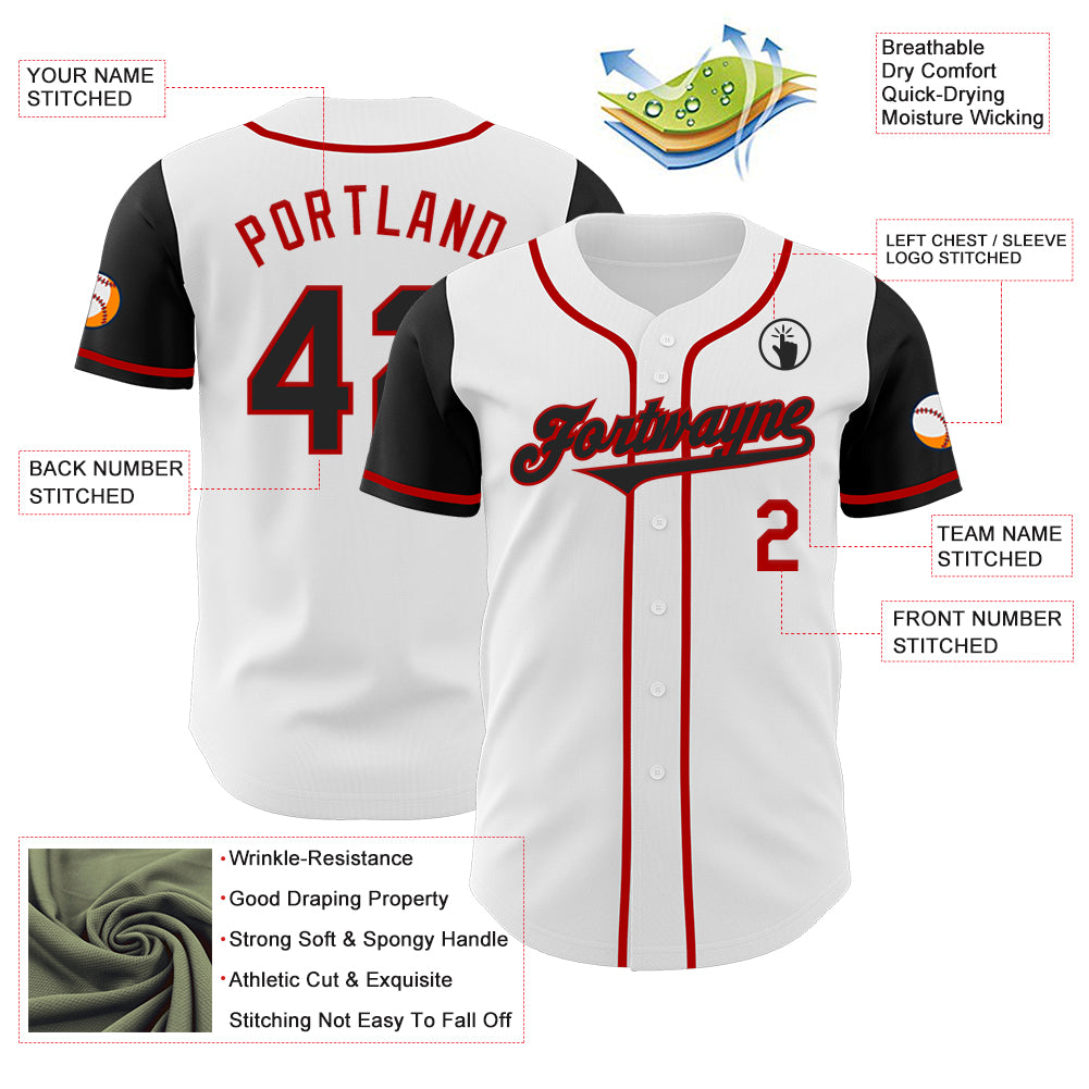 Custom White Black-Red Authentic Two Tone Baseball Jersey