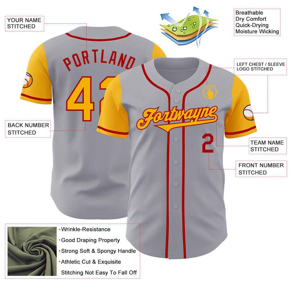 Custom Gray Gold-Red Authentic Two Tone Baseball Jersey