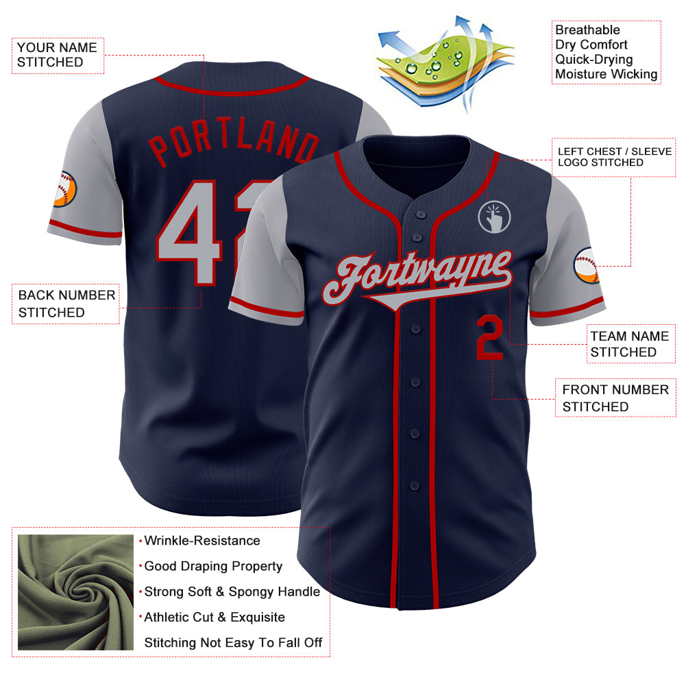 Custom Navy Gray-Red Authentic Two Tone Baseball Jersey