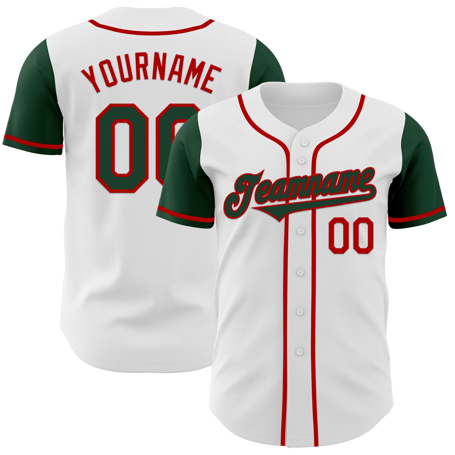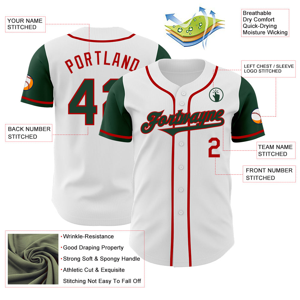 Custom White Green-Red Authentic Two Tone Baseball Jersey