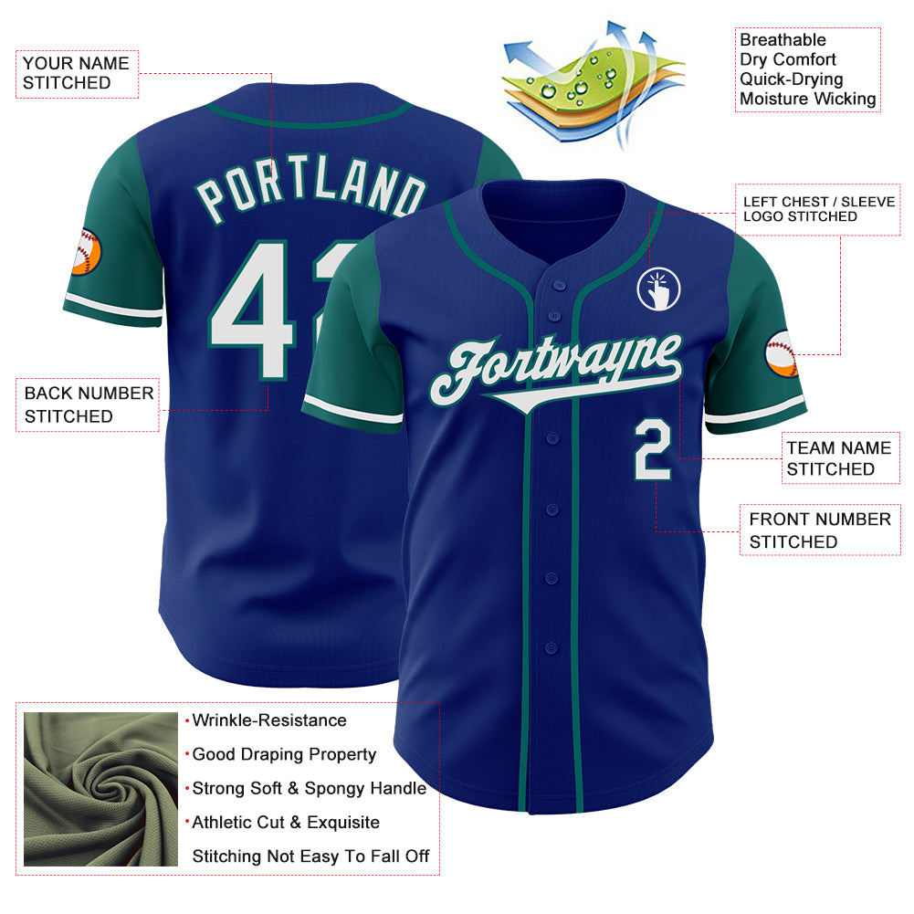 Custom Royal White-Teal Authentic Two Tone Baseball Jersey