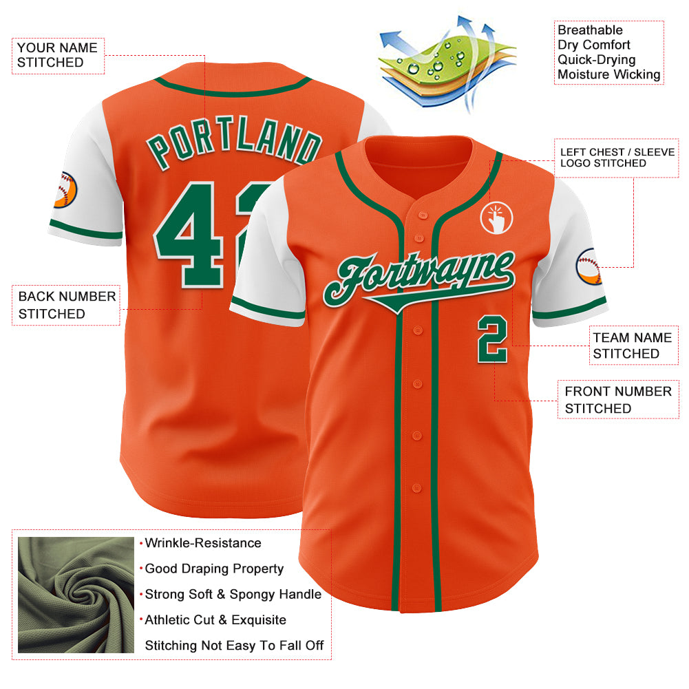Custom Orange Kelly Green-White Authentic Two Tone Baseball Jersey