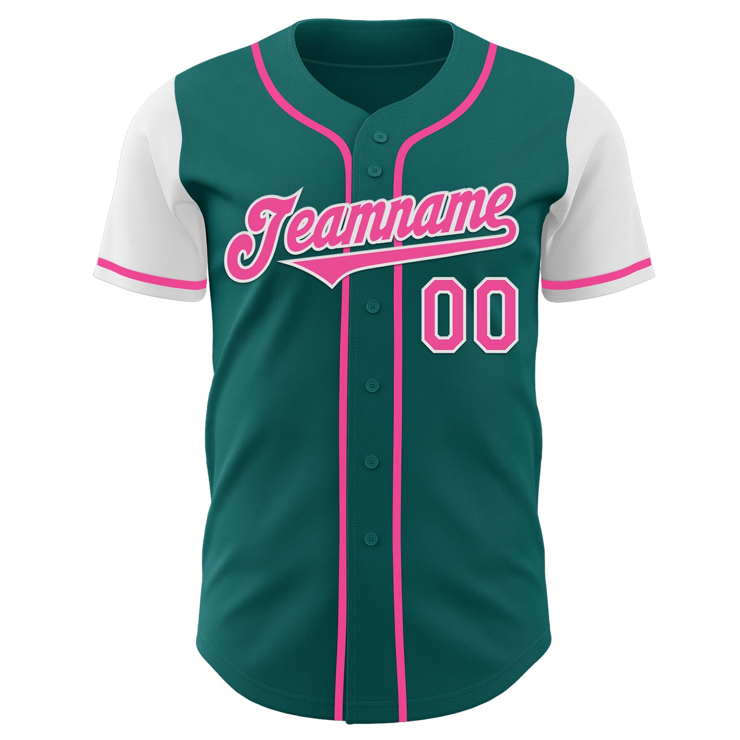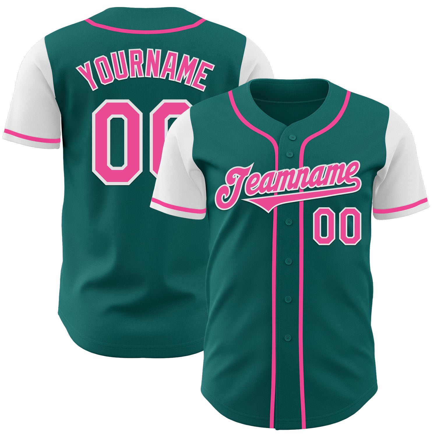 Custom Teal Pink-White Authentic Two Tone Baseball Jersey