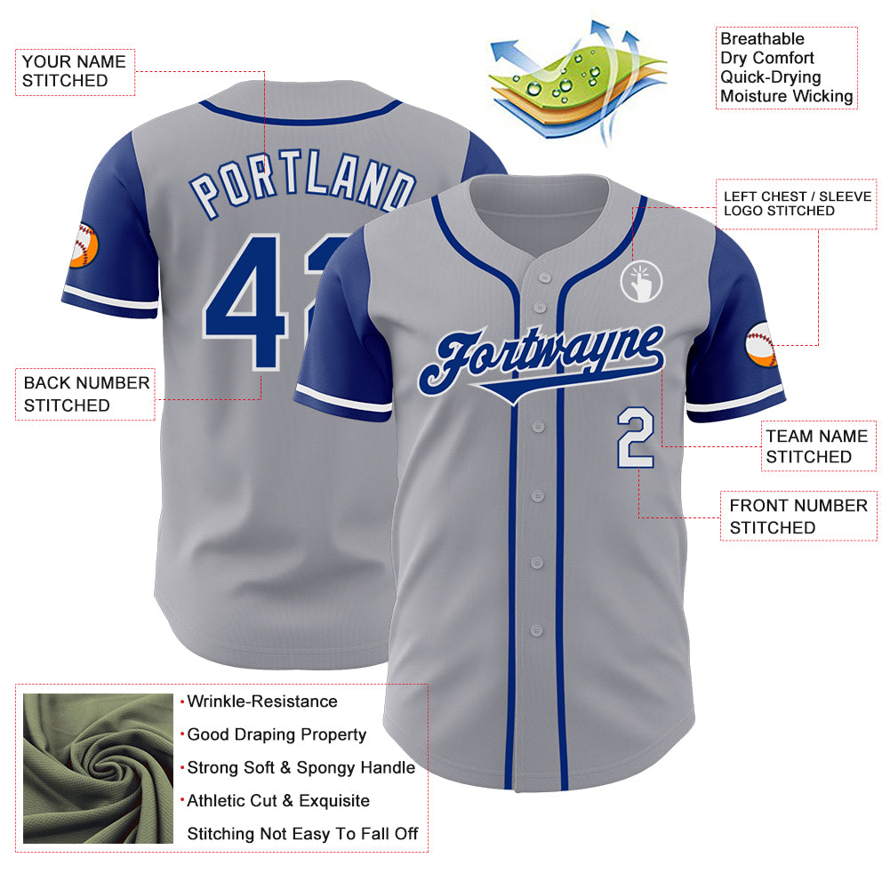 Custom Gray Royal-White Authentic Two Tone Baseball Jersey