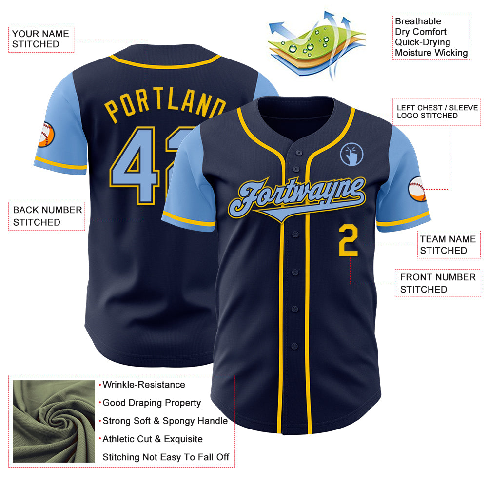 Custom Navy Light Blue-Yellow Authentic Two Tone Baseball Jersey