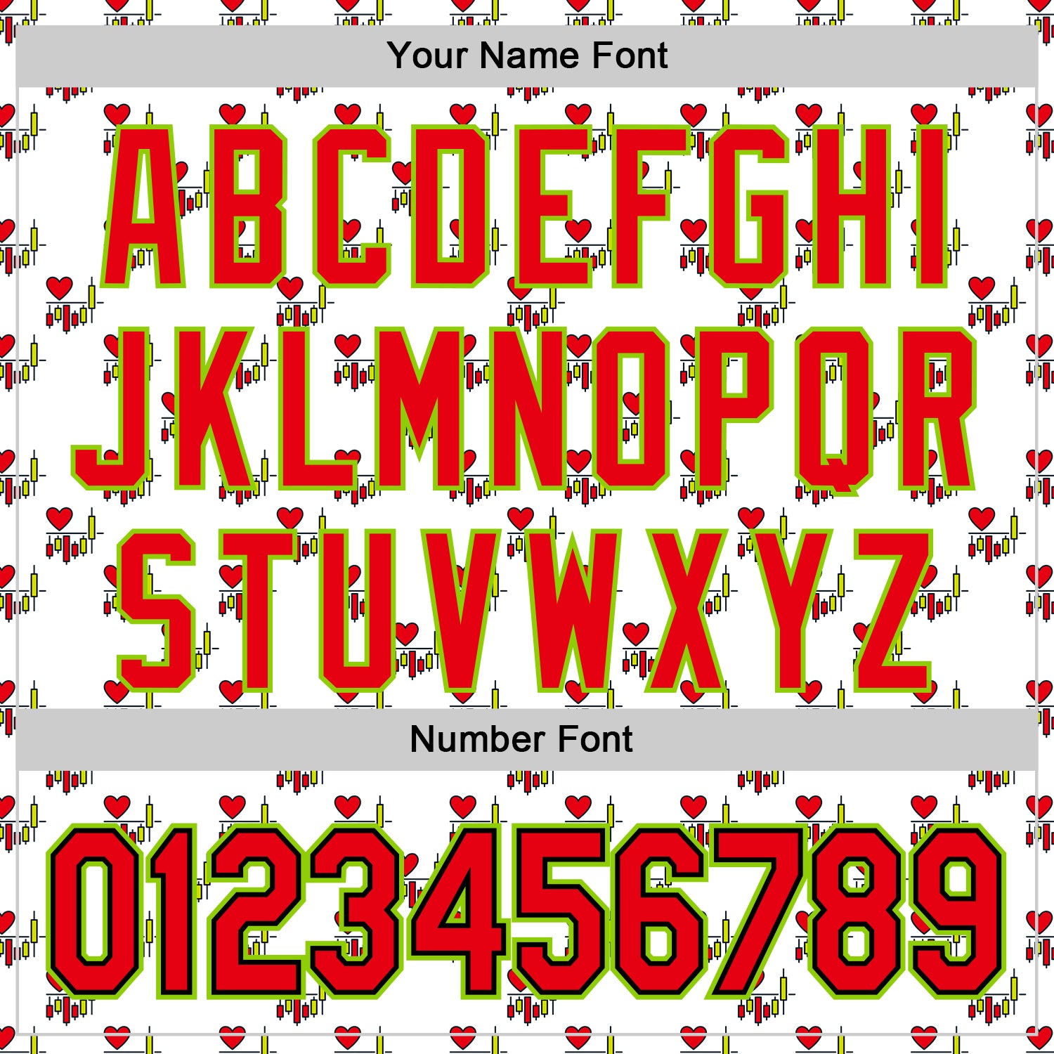 Custom White Fire Red Black-Neon Green Valentine's Day Love Heart Authentic Baseball Jersey