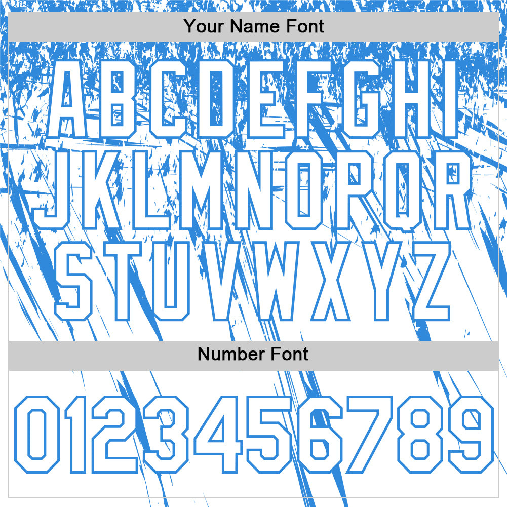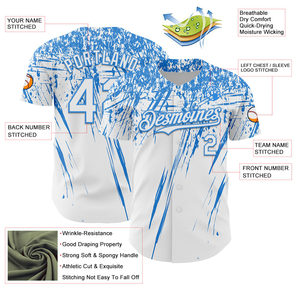 Custom White Electric Blue Distressed Scratch Brush Stroke Authentic Baseball Jersey