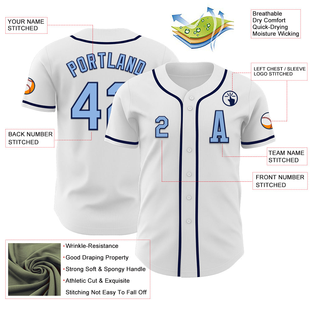 Custom White Light Blue-Navy Authentic Baseball Jersey
