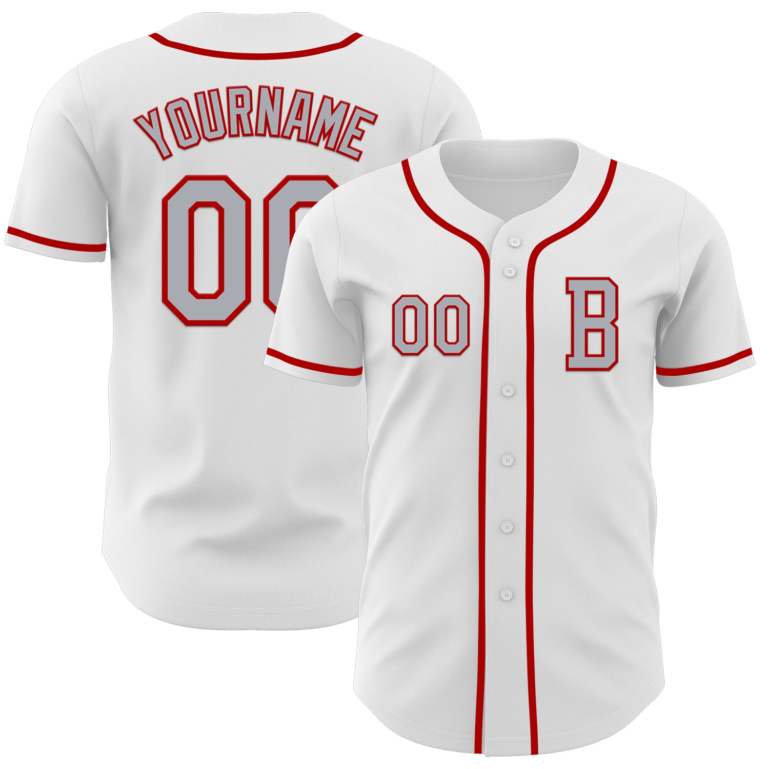 Custom White Gray-Red Authentic Baseball Jersey