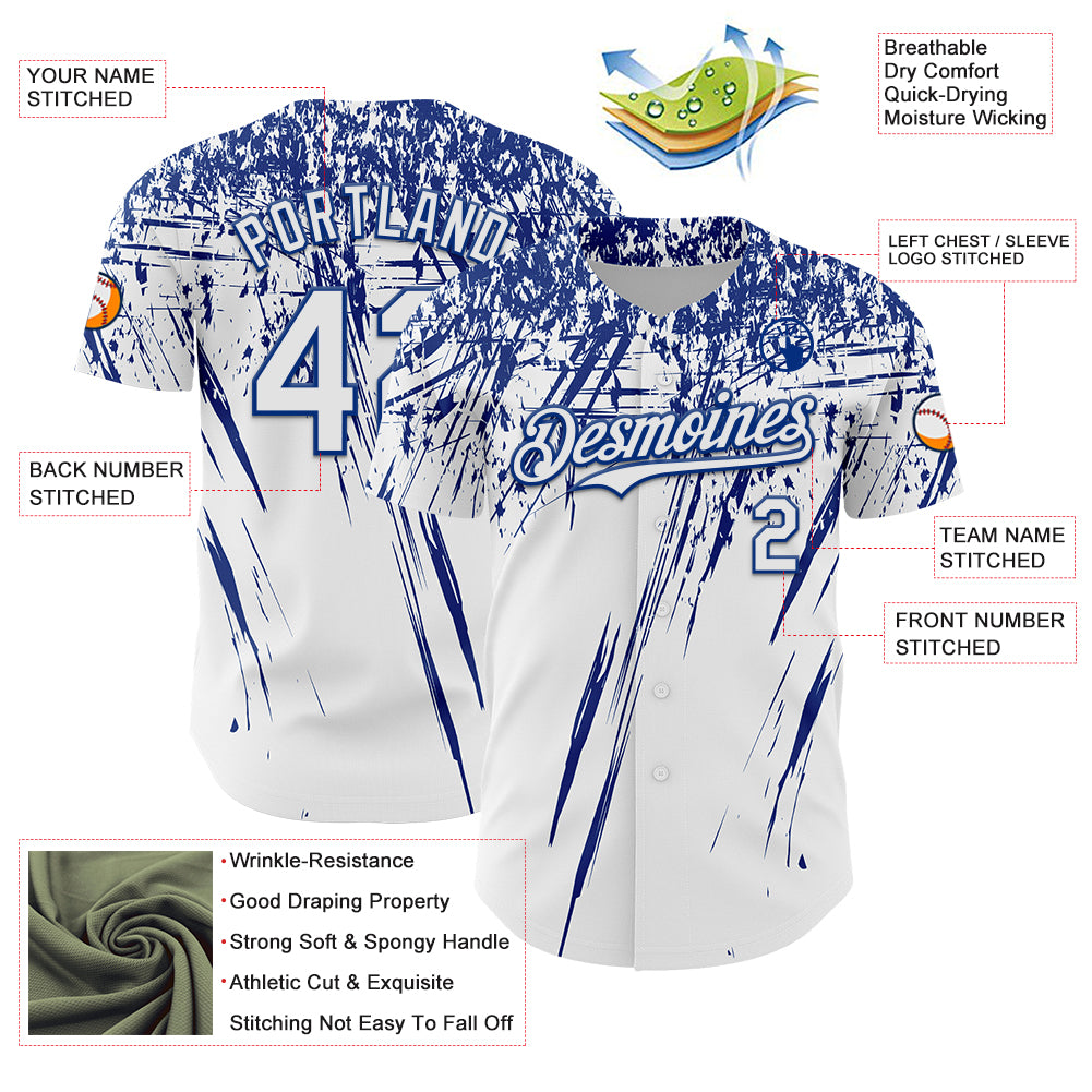 Custom White Royal Distressed Scratch Brush Stroke Authentic Baseball Jersey