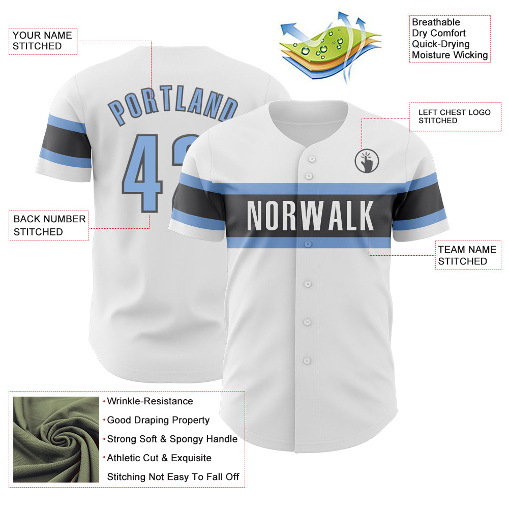 Custom White Light Blue-Steel Gray Authentic Baseball Jersey