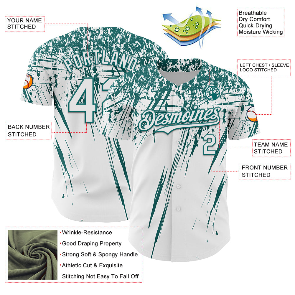 Custom White Teal Distressed Scratch Brush Stroke Authentic Baseball Jersey