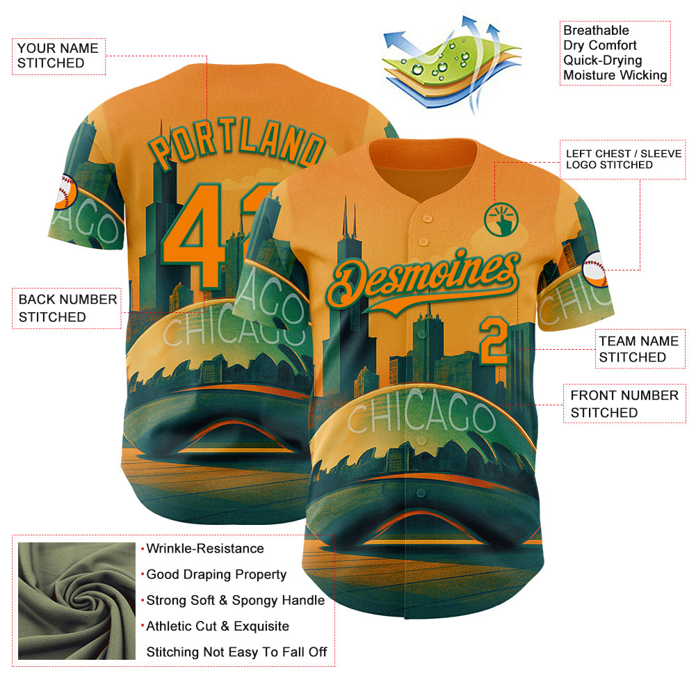Custom Yellow Bay Orange-Kelly Green Chicago Illinois Millennium Park Cloud Gate The Bean Landmark City Symbol Authentic Baseball Jersey