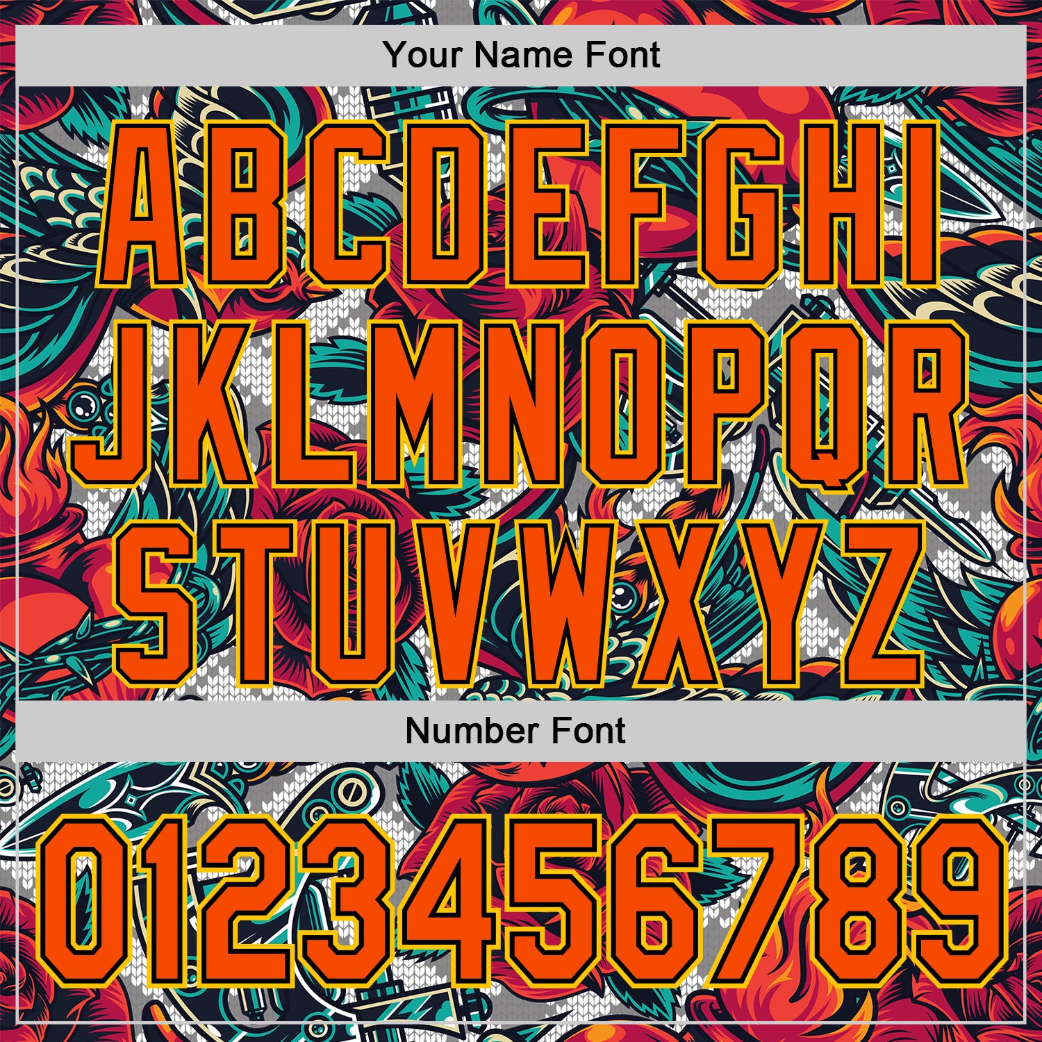 Custom White Orange Black-Yellow 3D Pattern Design Rave Party Roses Vintage Tattoos Authentic Baseball Jersey