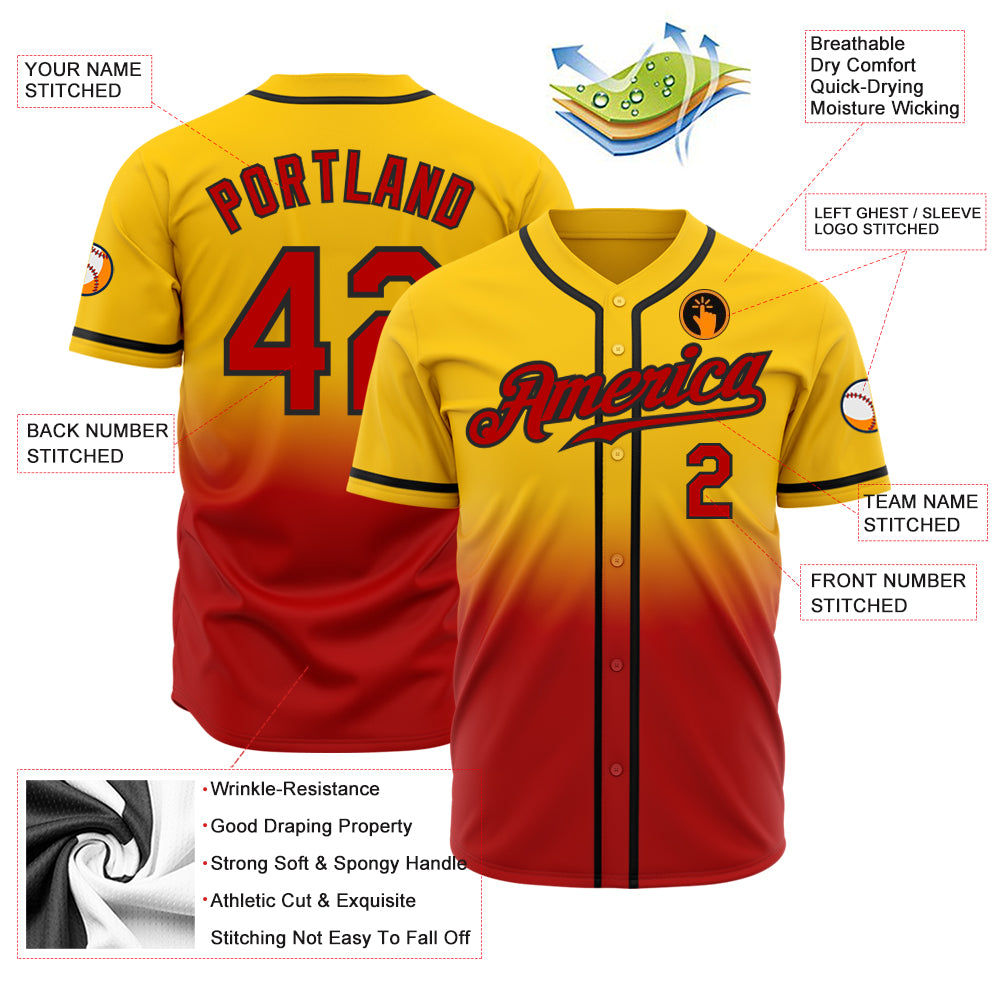 Custom Yellow Red-Black Authentic Fade Fashion Baseball Jersey