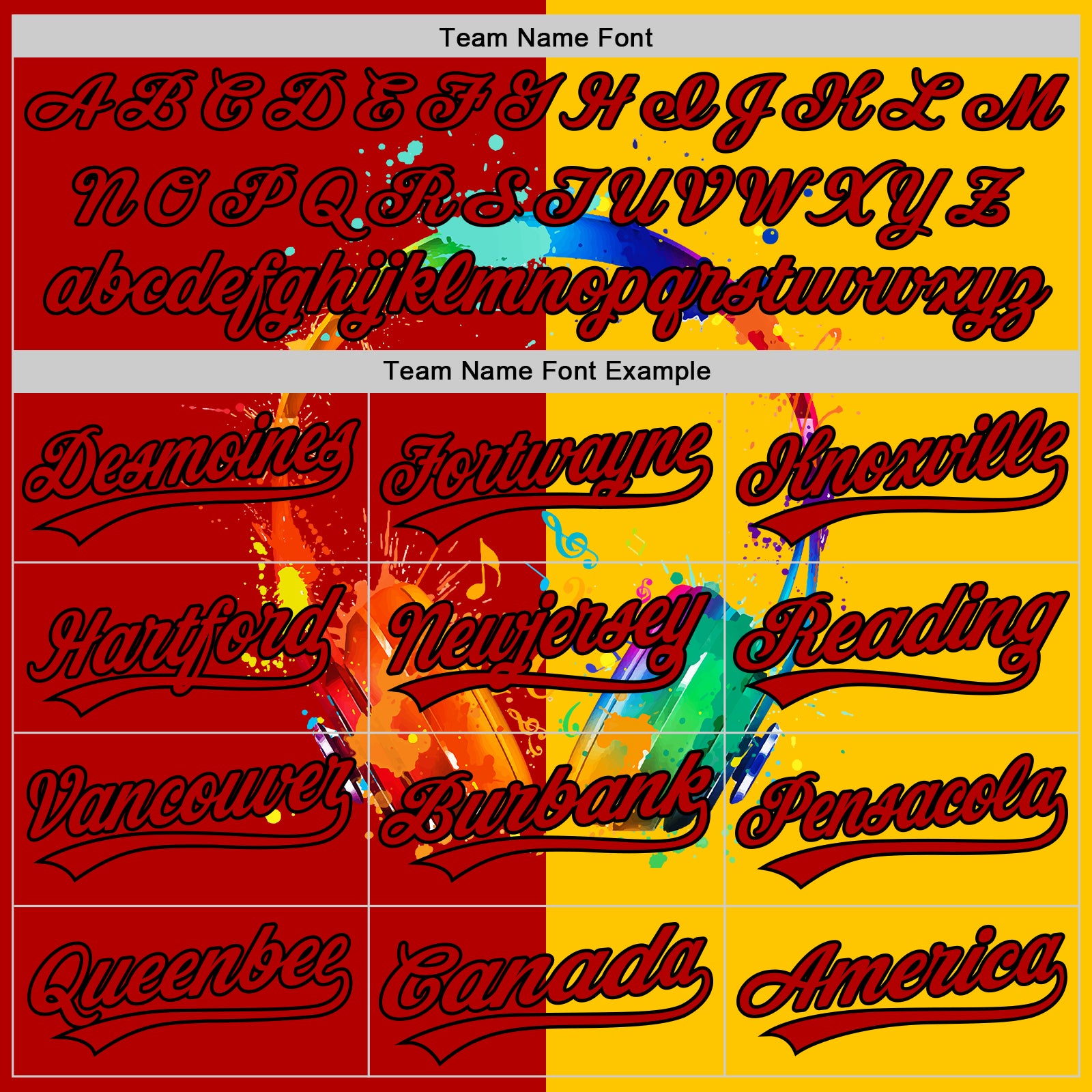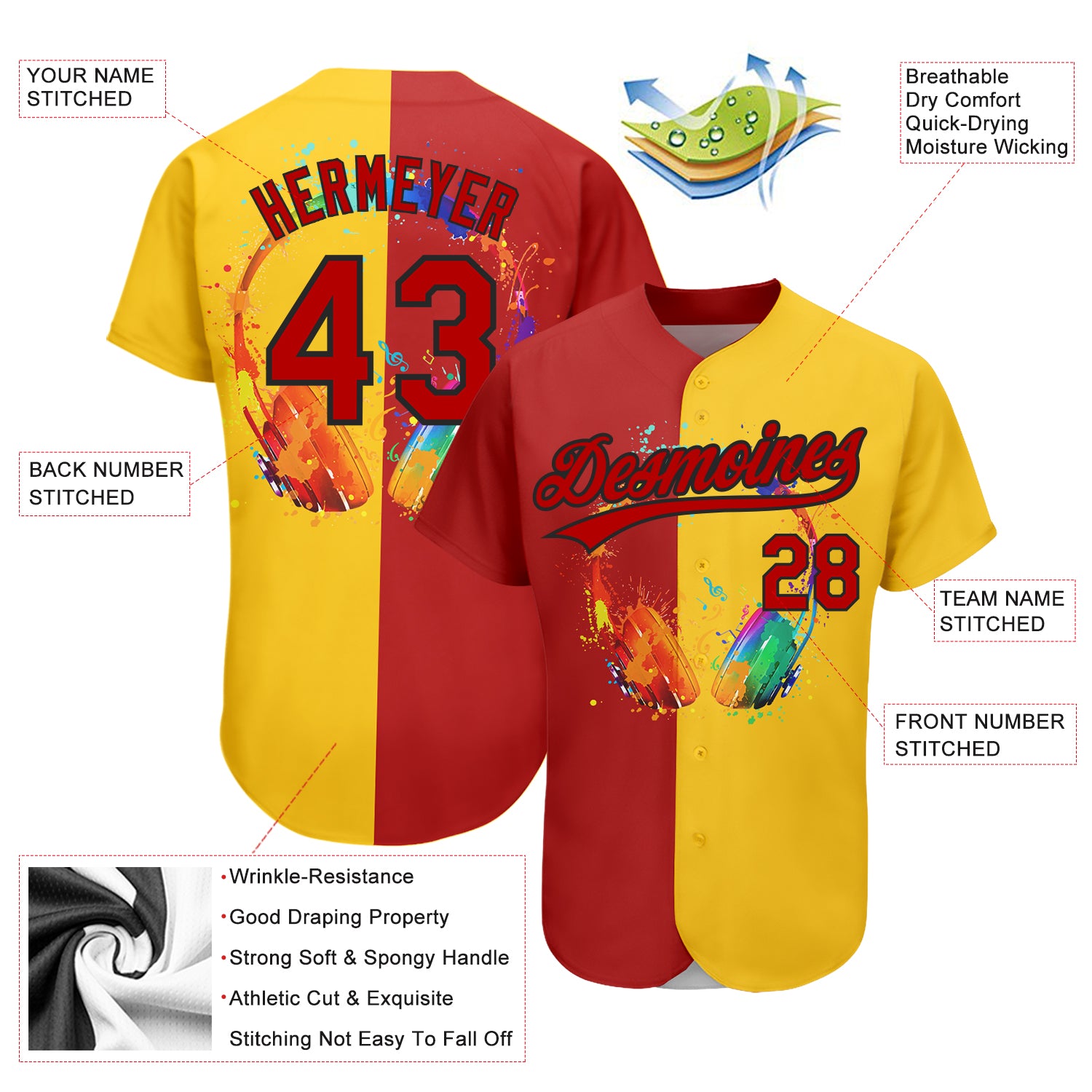 Custom Yellow Red-Black 3D Pattern Design Music Festival Watercolor Headphone With Musical Notes Authentic Baseball Jersey