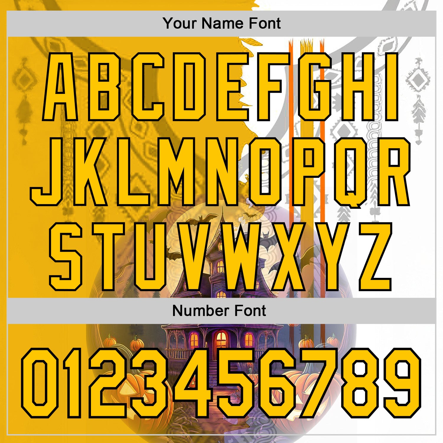 Custom White Yellow-Black 3D Halloween Spooky Pumpkin Authentic Baseball Jersey