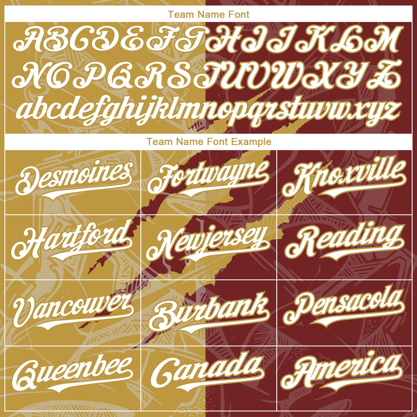 Custom Graffiti Pattern White Burgundy-Old Gold 3D Scratch Authentic Baseball Jersey