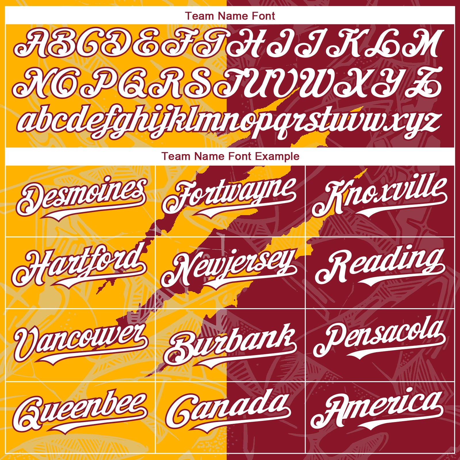 Custom Graffiti Pattern White Crimson-Gold 3D Scratch Authentic Baseball Jersey