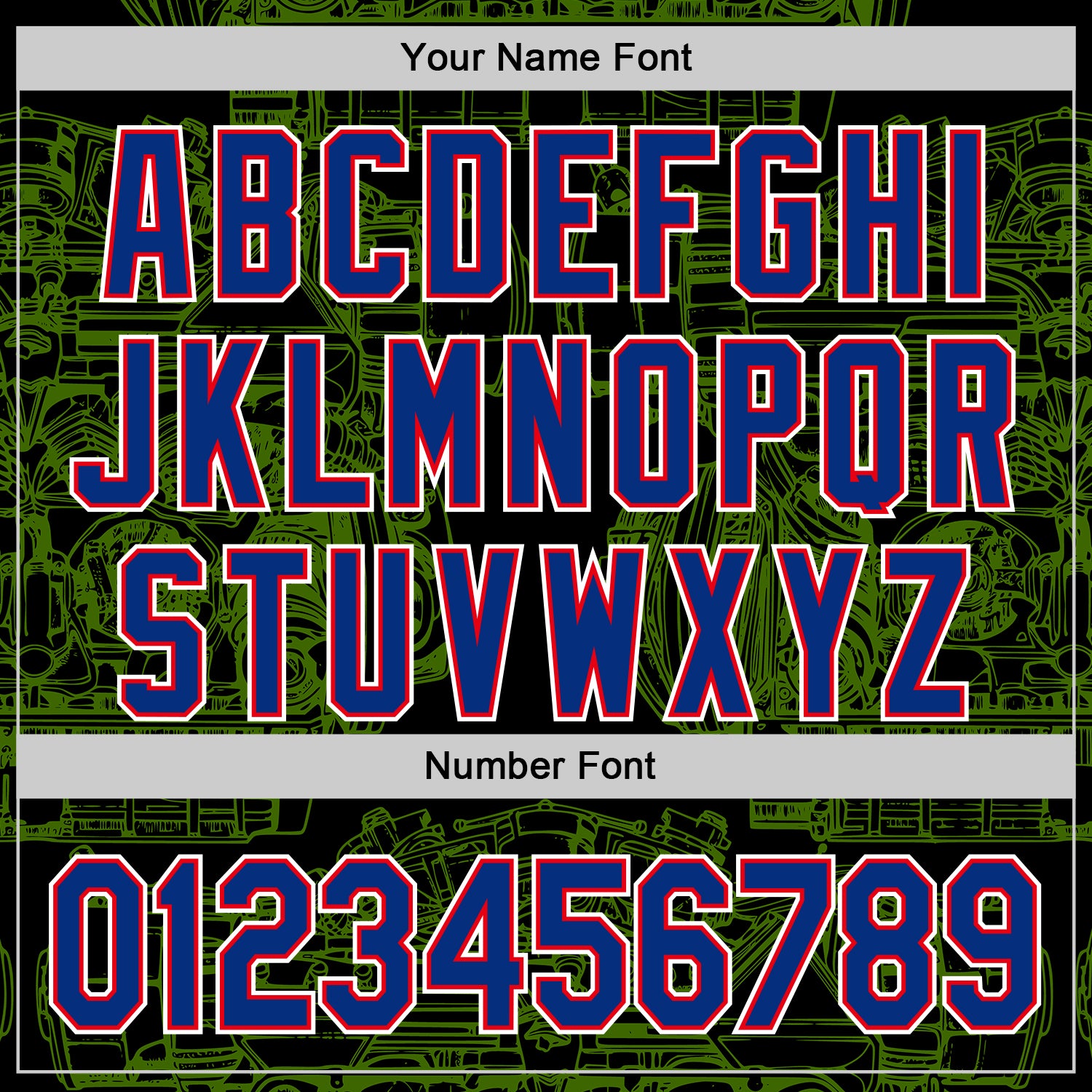 Custom Black Royal Green Fire Red-White 3D Pattern Design Detroit Cityscape Muscle Car Engine Authentic Baseball Jersey