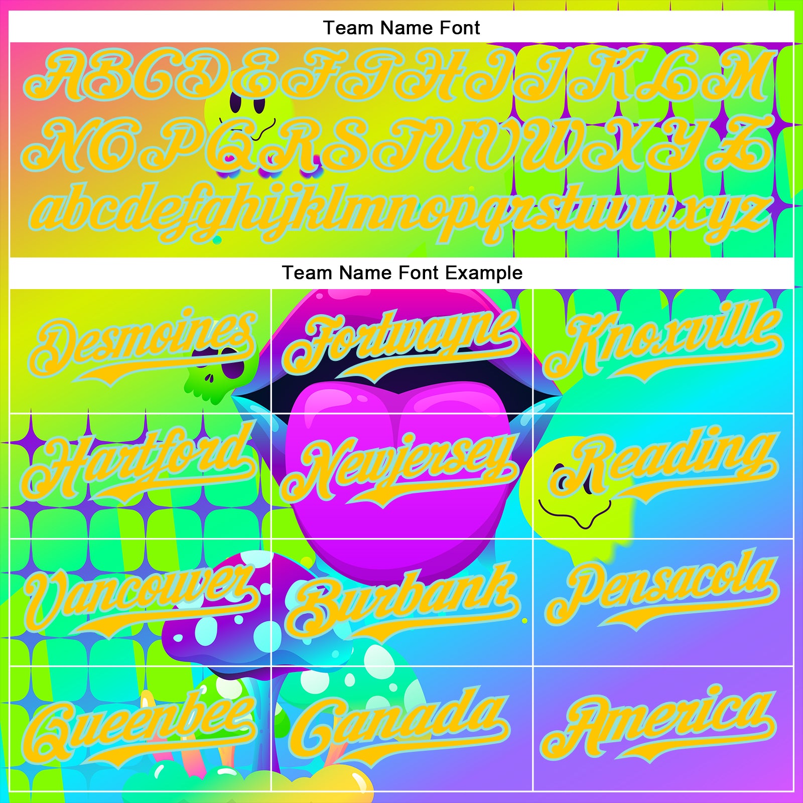Custom Green Yellow-Ice Blue 3D Pattern Design Trippy Magic Mushrooms Acid Authentic Baseball Jersey