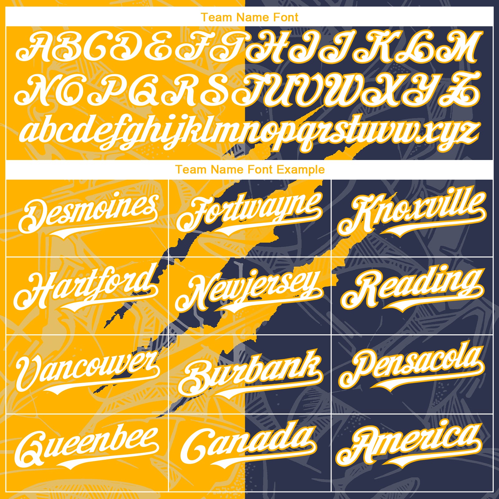 Custom Graffiti Pattern White Navy-Gold 3D Scratch Authentic Baseball Jersey