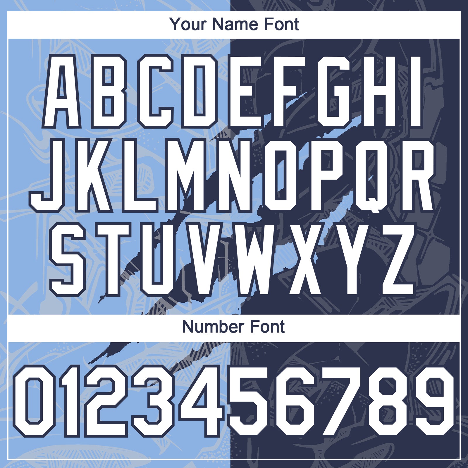 Custom Graffiti Pattern White Navy-Light Blue 3D Scratch Authentic Baseball Jersey