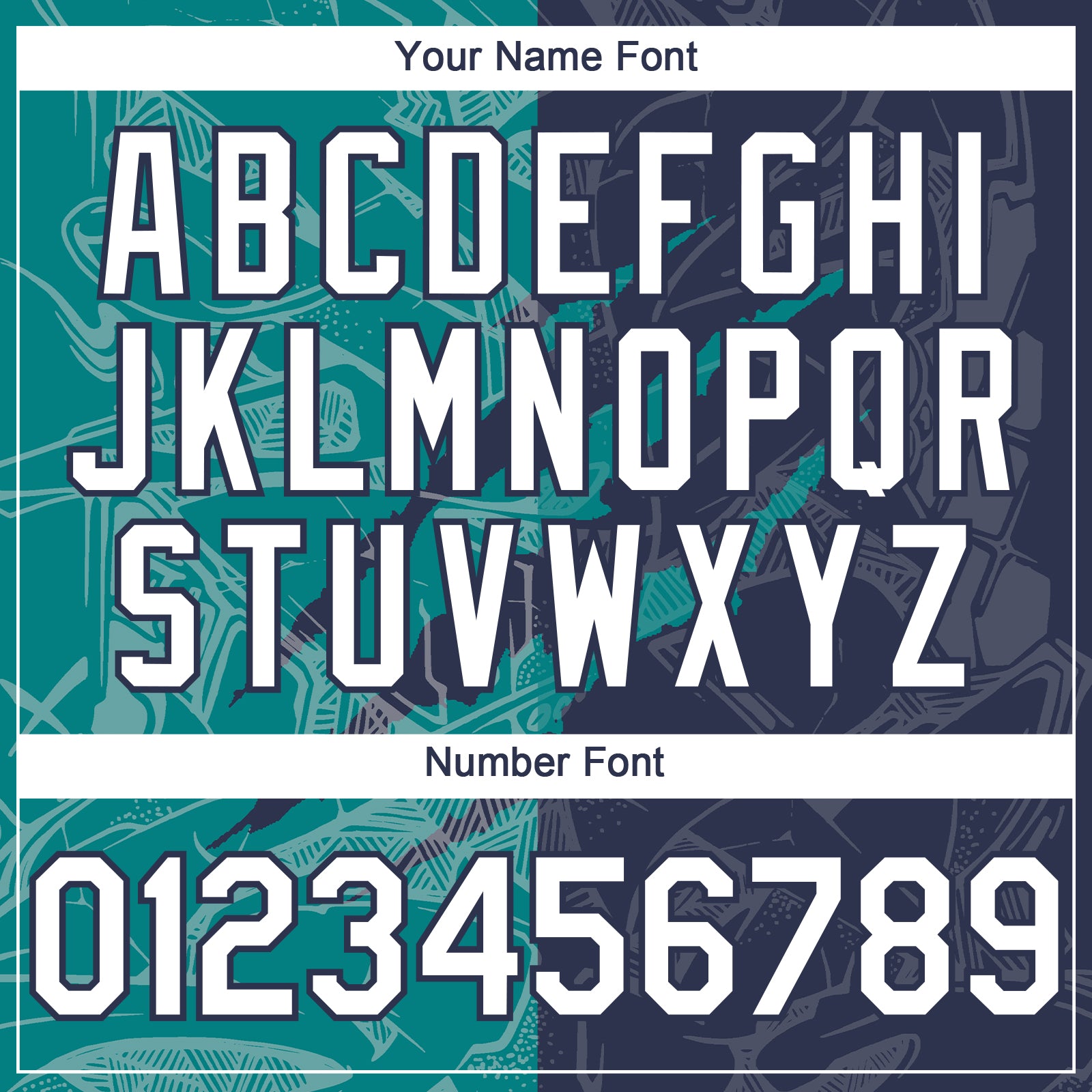 Custom Graffiti Pattern White Navy-Teal 3D Scratch Authentic Baseball Jersey