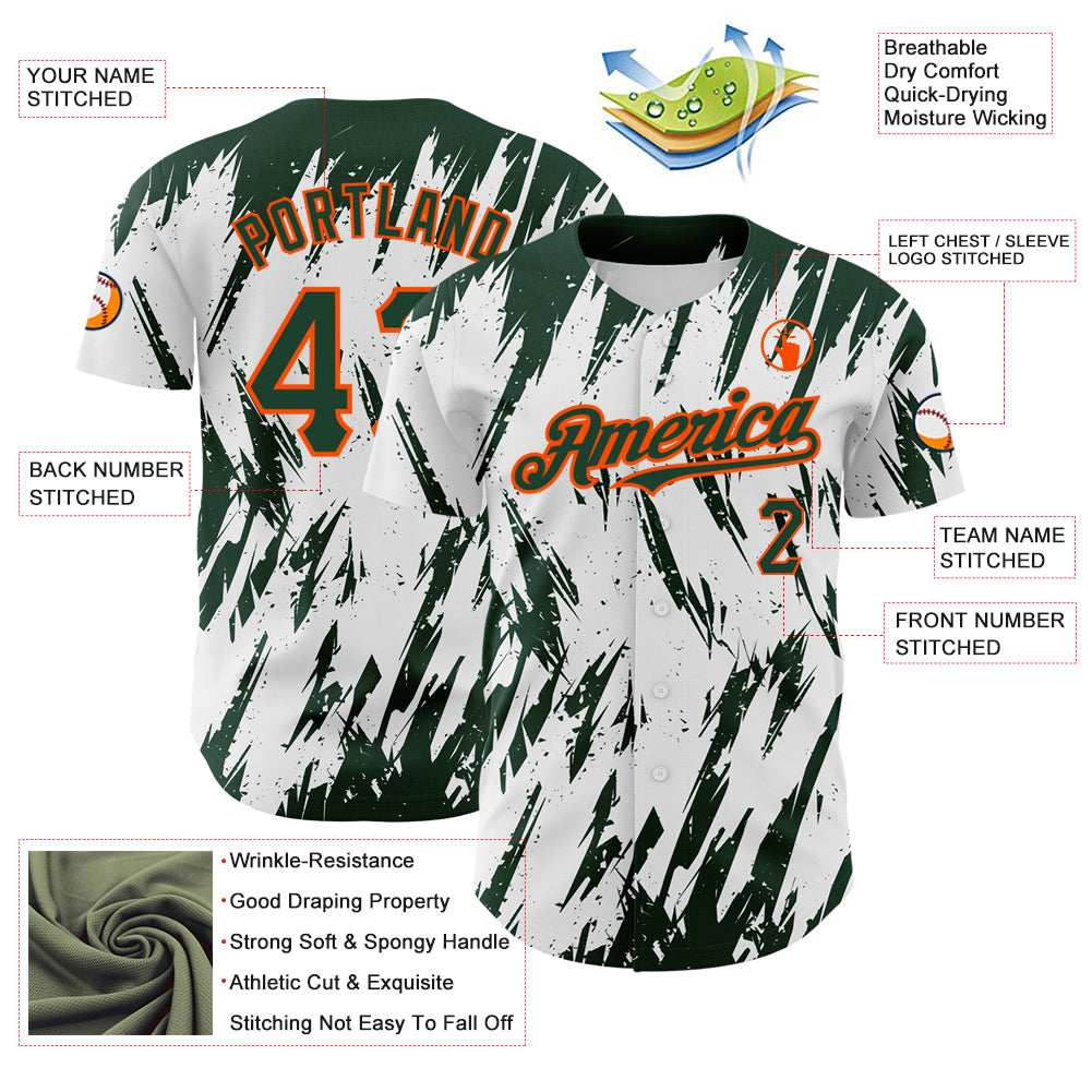 Custom White Green-Orange 3D Pattern Design Abstract Sharp Shape Authentic Baseball Jersey