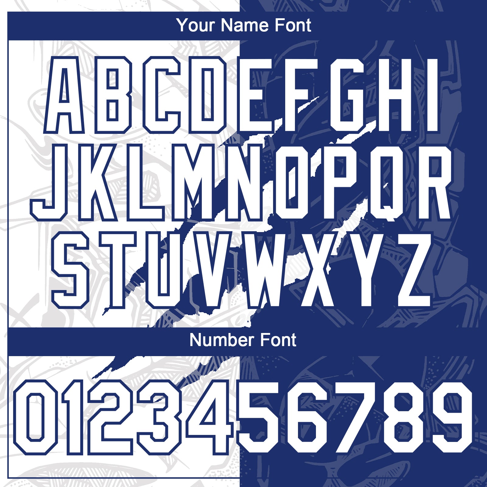 Custom Graffiti Pattern White-Royal 3D Scratch Authentic Baseball Jersey